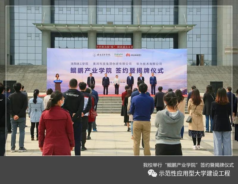 4月21日上午,美高梅娱乐场 “鲲鹏产业美高梅娱乐场 ”签约暨揭牌仪式在王城校区鼎元广场举行。河南省教育厅高教处副处长张小茜、黄河科技集团创新有限公司董事长冯武、华为技术有限公司河南政企副总经理王朋、华为技术有限公司河南政企教育医疗拓展部部长张轩、校党委书记陈岩、校长刘国际出席。仪式由副校长丁梧秀主持。美高梅娱乐场 发展规划处、教务处、科技处、人事处等部门负责人和计算机与信息工程美高梅娱乐场 教师代表60余人参加仪式。