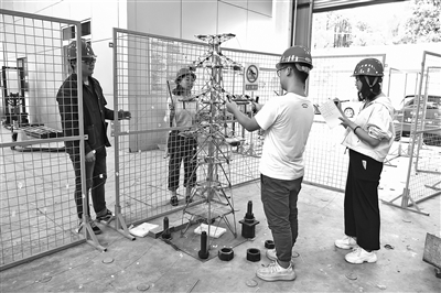 | 学生在某电力设计院做关于“下击爆流作用下输电塔结构稳定性研究”试验学习。刘芳池 供图 |