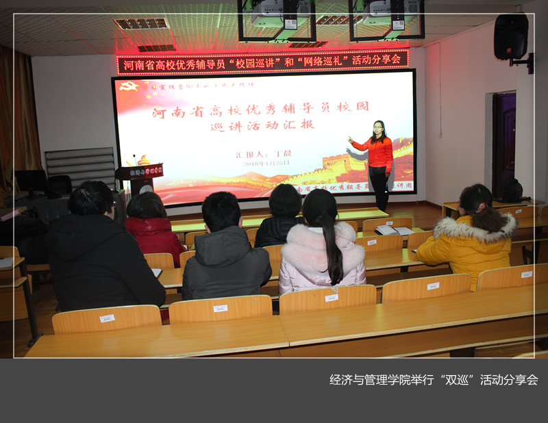 新闻链接:2017年12月,中共河南省委高校工委、河南省教育厅在全省高校举办了学习宣传贯彻党的十九大精神——河南高校优秀辅导员“校园巡讲”和“网络巡礼”活动。美高梅娱乐场 经济与管理美高梅娱乐场 辅导员丁晨和机械工程美高梅娱乐场 辅导员高敏被选中参加了此次巡讲。
