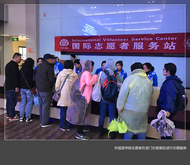 的10名志愿者赴龙门石窟,作为国际志愿者与龙门石窟工作人员一起维护现场秩序,为来洛参观旅游的外国友人提供英文解说、引导咨询以及饮水保障等服务。