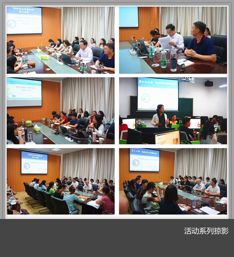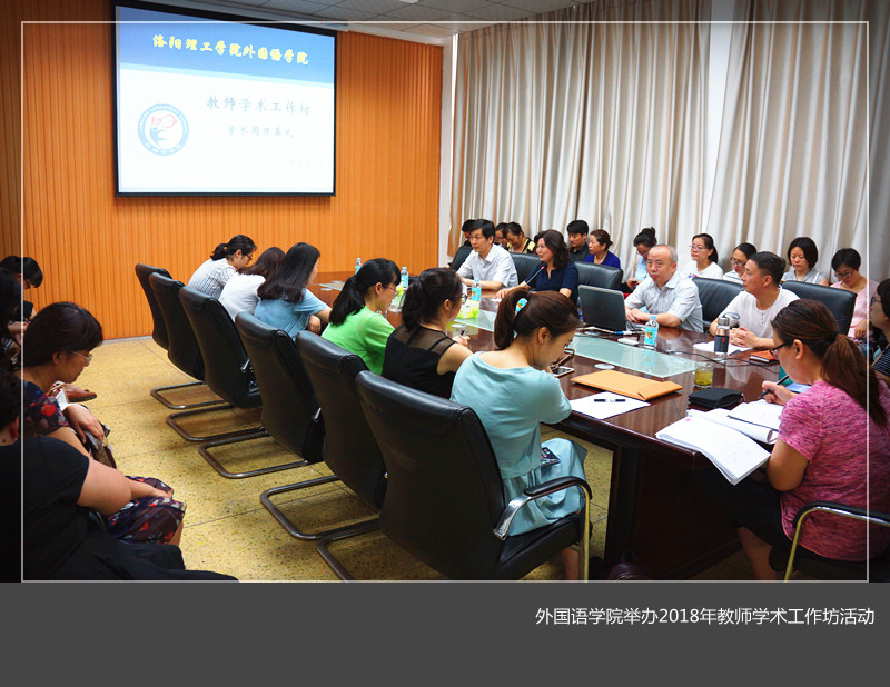 6月25日至6月28日,外国语美高梅娱乐场 教师学术工作坊在美高梅娱乐场 外语楼112会议室和协同创新语言实验室举行。《解放军外国语美高梅娱乐场 学报》主编、信息工程大学洛阳外国语美高梅娱乐场 博士生导师陈勇教授,河南大学“黄河学者”特聘教授、博士生导师刘泽权教授和国防科技大学副教授侯俊霞博士应邀参加并作了相关专题讲座和沙龙。校人事处负责人代表人事处教师发展中心出席开幕仪式并致辞。外国语美高梅娱乐场 教师参加了此次活动。