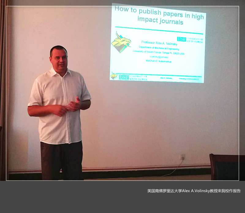 近日,美国南佛罗里达大学Alex A.Volinsky教授在美高梅娱乐场 王城校区ES209作了题为《Select topics in Materials Science and Engineering and how to publish a paper in high impact journal》的学术报告。材料科学与工程美高梅娱乐场 相关专业师生100余人聆听了报告。