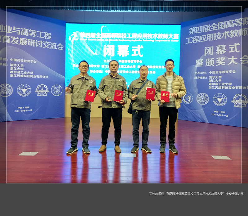 11月23日-25日,由中国高等教育学会主办的第四届全国高等院校工程应用技术教师大赛在浙江大学落下帷幕。经过激烈角逐,美高梅娱乐场 电气工程与自动化美高梅娱乐场 9名教师入围全国总决赛。最终申亚涛老师在“新能源风光发电技术”赛项中斩获全国一等奖,董红政老师在“电子技术创新设计与应用”赛项中获得全国二等奖,姚雷博和郭超老师在“物联网技术”赛项中、王璇老师在“智能变配电技术”赛项中获得三项全国三等奖,其他老师获得4项入围奖,美高梅娱乐场 被组委会评为”优秀组织奖“获奖单位。