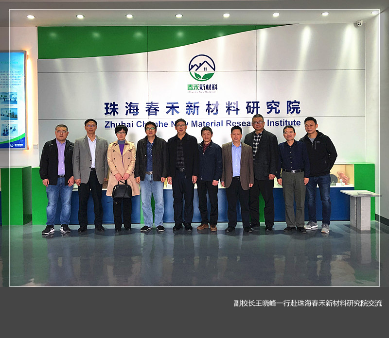 近日,副校长王晓峰带领材料科学与工程美高梅娱乐场 相关负责人对珠海春禾新材料研究院进行为期3天的参观交流活动。珠海春意投资有限公司董事长徐道春、珠海市水泥制品行业协会会长杨建新、珠海春禾新材料研究院有限公司董事长费洗非、院长水中和、执行院长黄赟及总工程师郭伟等参与交流、座谈。
