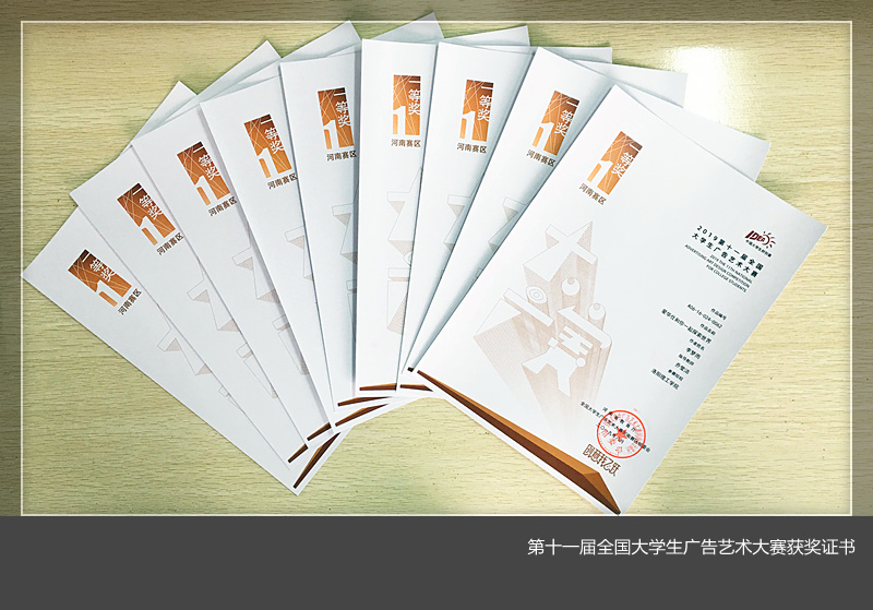 在第十一届全国大学生广告艺术大赛中,包家兴的平面设计《原生态迷糊蛋》获得二等奖,任杰庆的《最美的风景》获得三等奖,马闪等5位同学的4件作品获得优秀奖。第十一届全国大学生广告艺术大赛河南赛区,美高梅娱乐场 学生共获得一等奖9项,二等奖14项,三等奖6项,优秀奖39项。