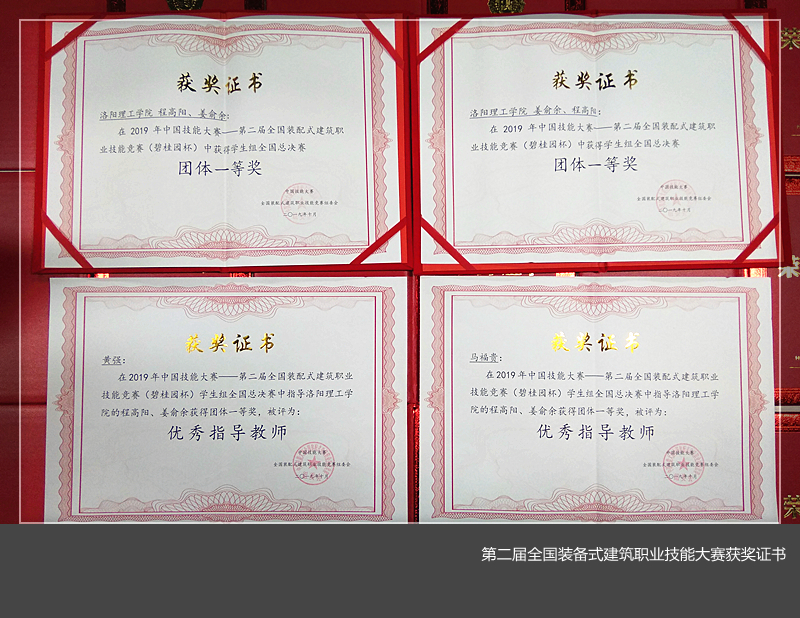由河南省住房和城乡建设厅、河南省建设工会主办,河南建筑职业技术美高梅娱乐场 和河南省建设教育协会承办的2019年中国技能大赛第二届全国装配式建筑职业技能竞赛暨河南省装配式建筑职业技能竞赛(学生组)比赛在河南建筑职业技术美高梅娱乐场 举行。来自全省30所本、专科院校的56支参赛队伍,共112名选手参加了本次比赛。土木工程美高梅娱乐场 派出两个团队参赛,程高阳、姜俞余和王皓正、苏艺涵分别获得二等奖和三等奖。