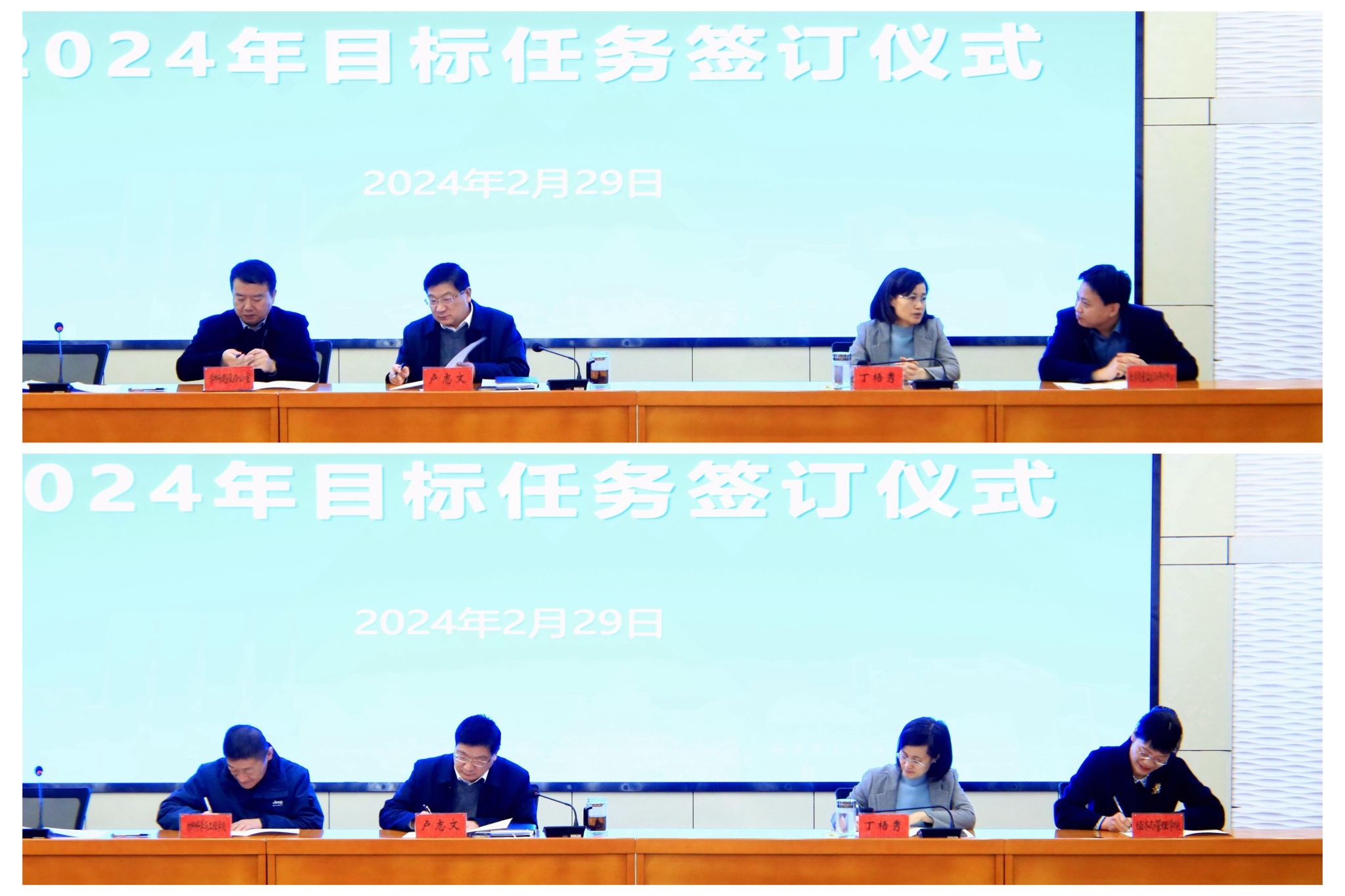 会上,卢志文、丁梧秀分别与二级单位党政主要负责人代表签订了《2024年度目标任务书》。