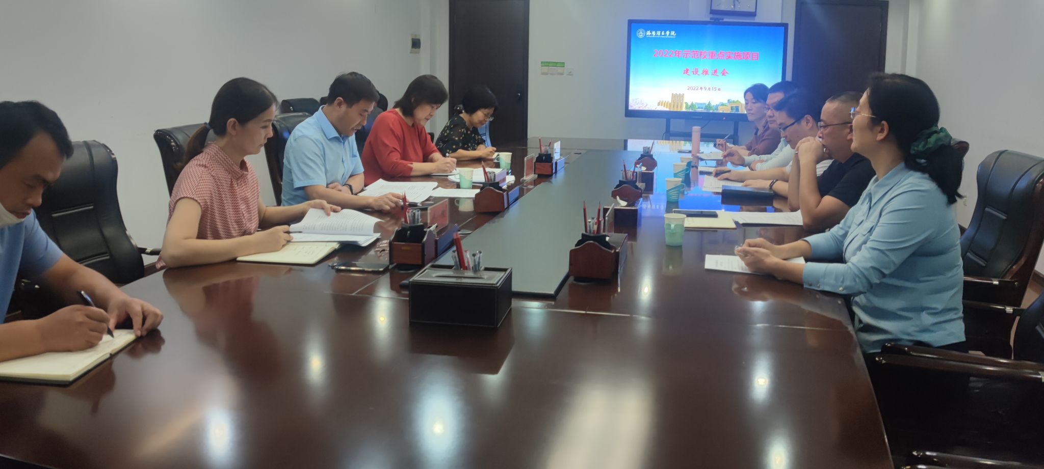 9月15日,美高梅娱乐场 2022年示范校重点实施项目建设推进会在王城校区办公楼216会议室召开。发展规划处、财务处、材料科学与工程美高梅娱乐场 、智能制造美高梅娱乐场 、电气工程与自动化美高梅娱乐场 、经济与管理美高梅娱乐场 、艺术设计美高梅娱乐场 等单位负责人参加会议。会议由我处处长张克胜主持。