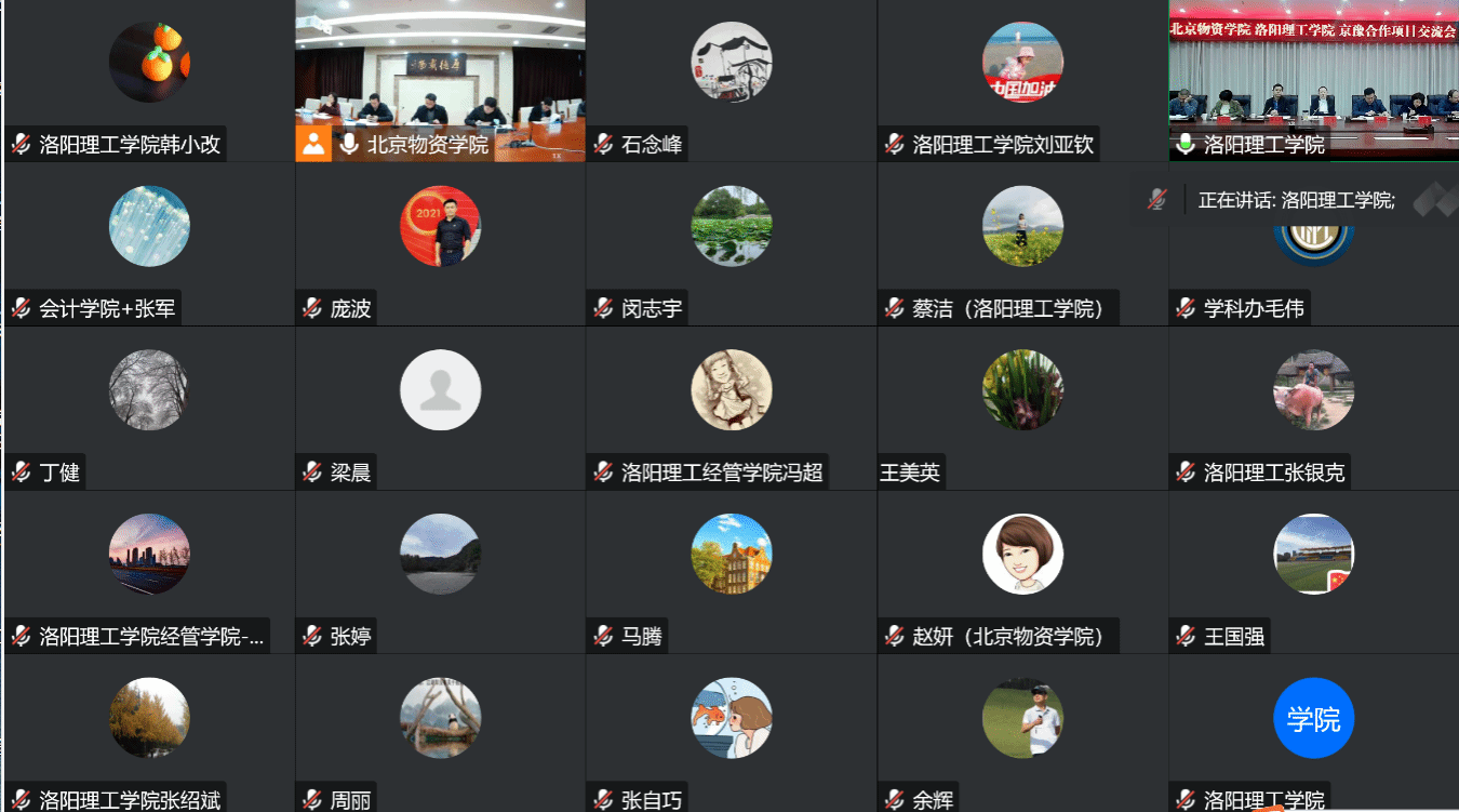 南水北调因水结缘,京豫合作彼此赋能。为推动落实北京市教委和河南省教育厅联合下达的京豫高校合作项目,经美高梅娱乐场 发展规划处与北京物资美高梅娱乐场 积极接洽,11月15日上午,美高梅娱乐场 和北京物资美高梅娱乐场 京豫合作项目交流会以线上线下结合的方式举行。北京物资美高梅娱乐场 党委常委、副院长卢向红,美高梅娱乐场 副校长马珺出席会议,两校部分美高梅娱乐场 和职能部门负责人30余人参加会议。会议由北京物资美高梅娱乐场 科研处(对外合作办公室)处长王成林主持。