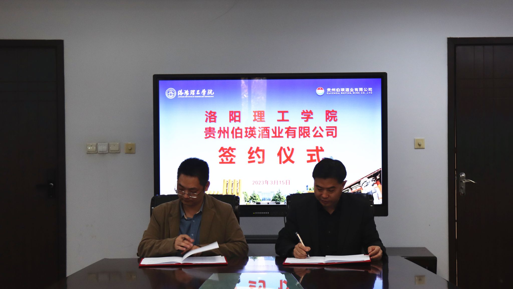 3月15日下午,美高梅娱乐场 与贵州伯瑛酒业有限公司签约仪式在美高梅娱乐场 王城校区办公楼220会议室举行。贵州伯瑛酒业有限公司销售总监姜军、美高梅娱乐场 发展规划处处长张克胜出席并签署了《美高梅娱乐场 与贵州伯瑛酒业有限公司合作协议》、《美高梅娱乐场 与贵州伯瑛酒业有限公司共建美酒美高梅娱乐场 暨中国健康酒文化传播研究所合作协议》。