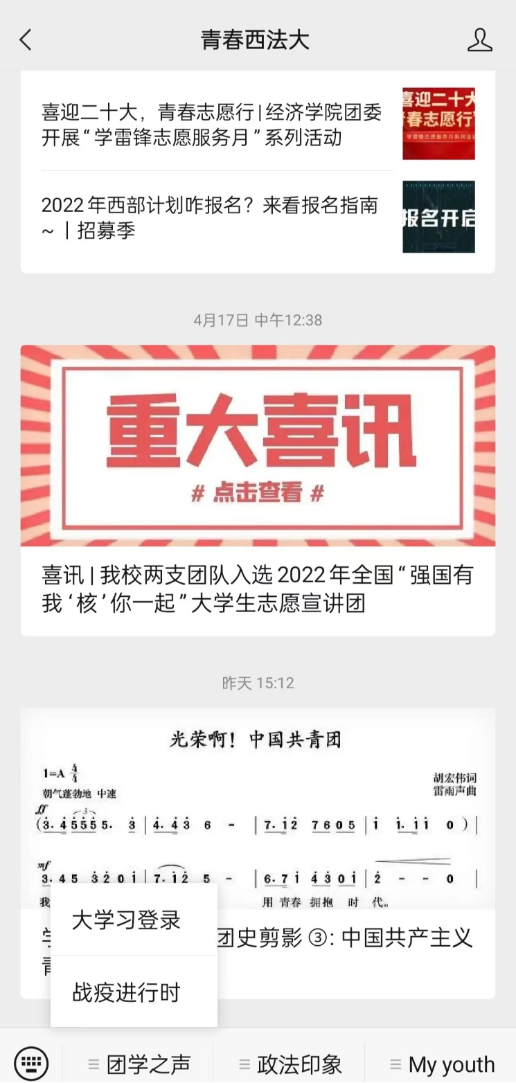 “青年大学习”需要通过以上两种方法进行学习才会记录学习参与率,所以请同学们注意通过有效的可记录渠道进行学习。“青年大学习”是一项长期性工作,所以需要同学们长期坚持,自觉积极主动的参与学习。