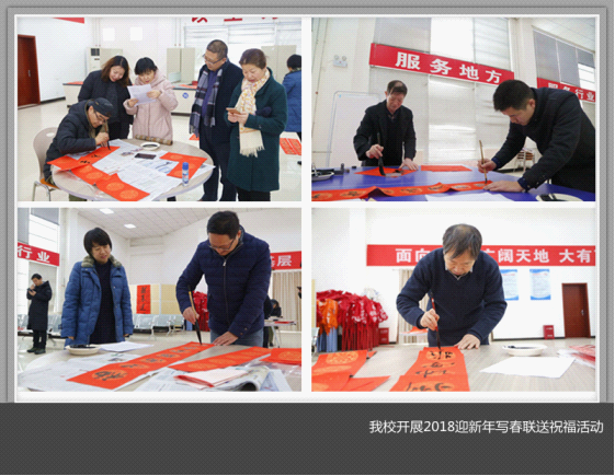 辞旧迎新,神犬送福。为传承祖国优秀传统文化艺术,弘扬向上向善的道德风尚,1月25日,校工会组织书画协会老师分别在王城校区、开元校区为教职工义务写春联送祝福。