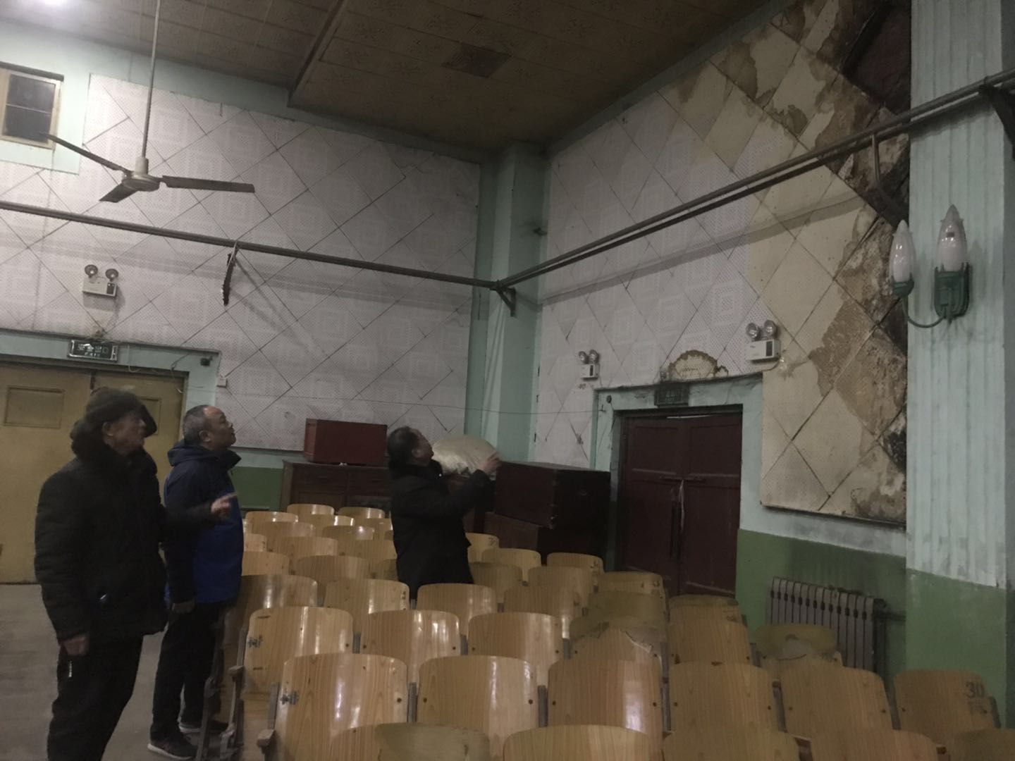 为落实美高梅娱乐场 安全稳定工作会议的精神,为保持良好的安全稳定局面,校工会副主席张明海、王志刚带领文体福利部,于2019年1月11日对九都校区的职工大礼堂和各教职工活动室进行安全大排查。