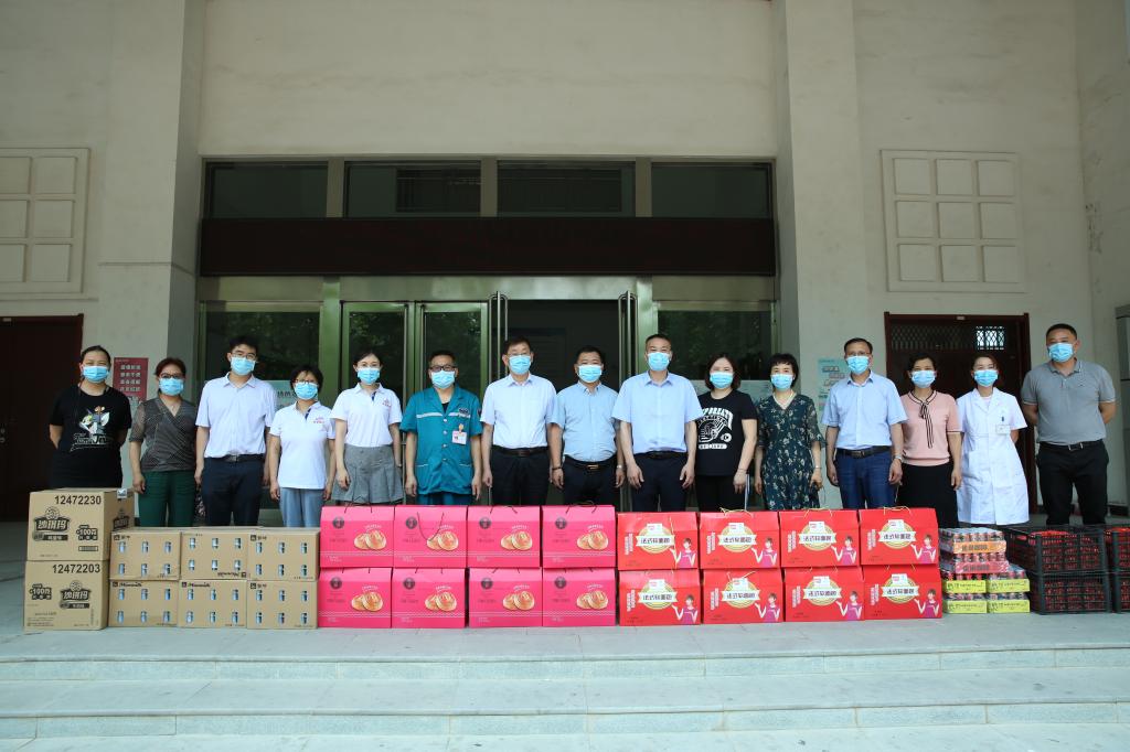 6月10日上午,校党委副书记、工会主席曾涛、副校长胡恩立带领校工会负责人来到位于王城校区体育馆的第二次疫苗接种点,走访慰问了防疫一线医护人员。