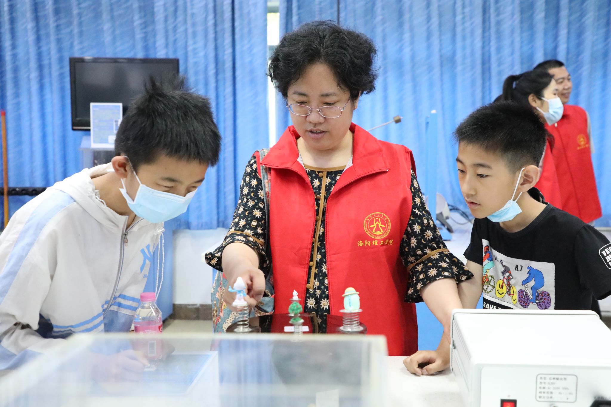 活动中,亲子家庭参观了物理实验中心科普物理走廊,感受实验中心浓浓的物理文化氛围。通过老师讲解,在学生和家长互助合作下,孩子们了解到各个项目的科学原理,在实践中体验科技的魅力,物理实验中心涉及到有关电磁学、光学、力学等广泛的科普知识,以形象有趣的形式诠释了科学原理,孩子们被有趣的物理实验项目牢牢地吸引住了!
