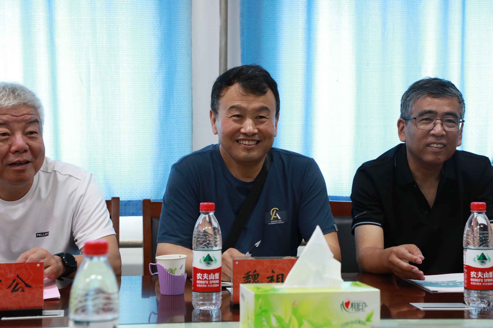 座谈会开始前,校党委副书记、工会主席曾涛与来访嘉宾亲切会面。