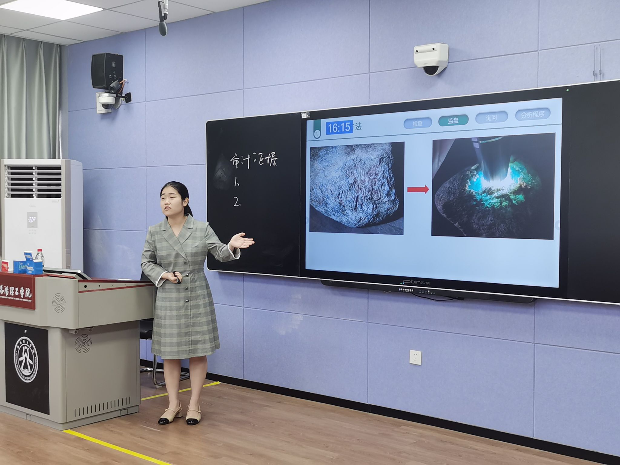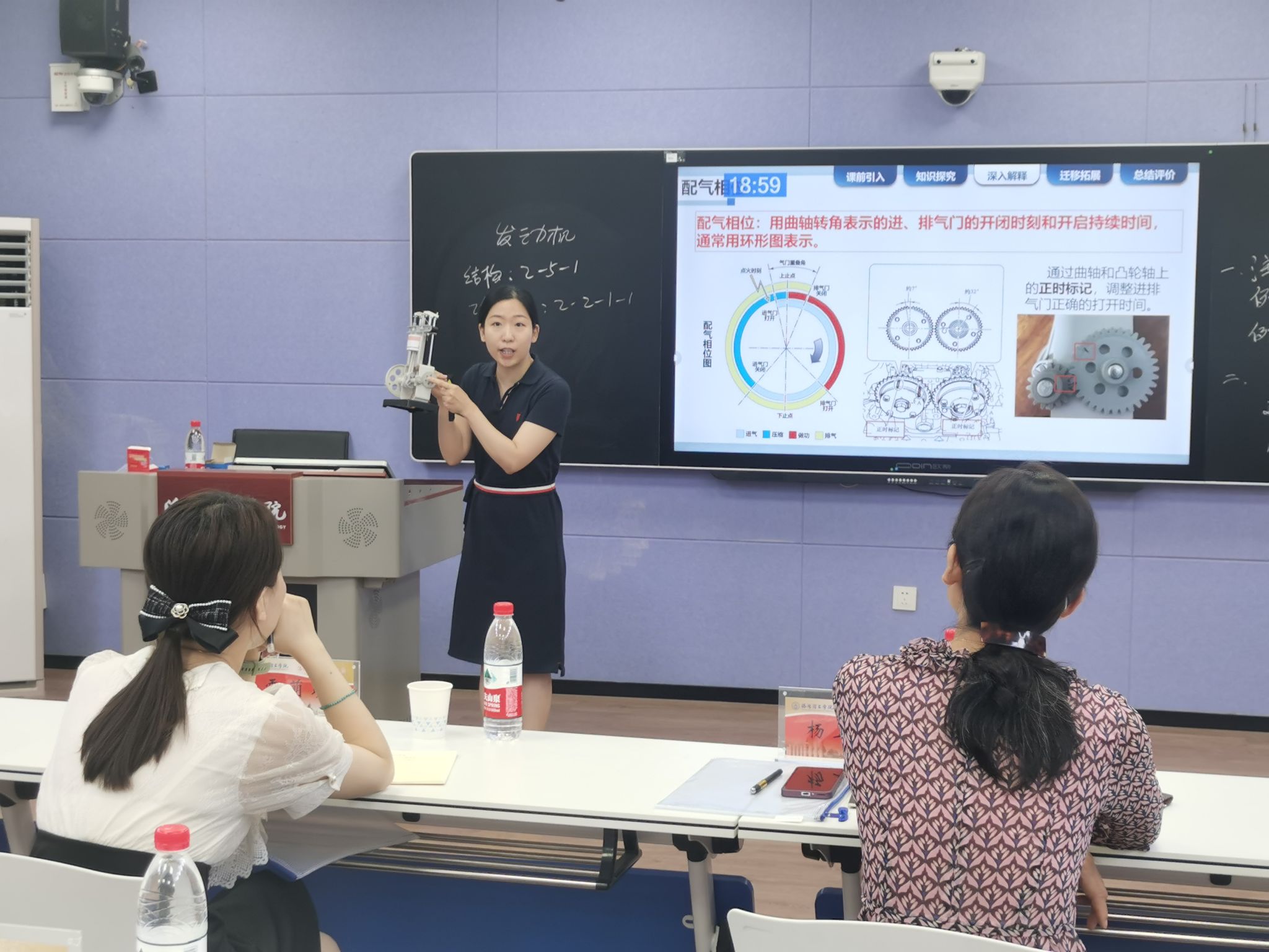三位参赛选手刘蔚老师、张晓伟老师、李洲稷老师按照河南省教学技能竞赛的比赛流程和要求自主选题,进行课堂教学和教学阐释。