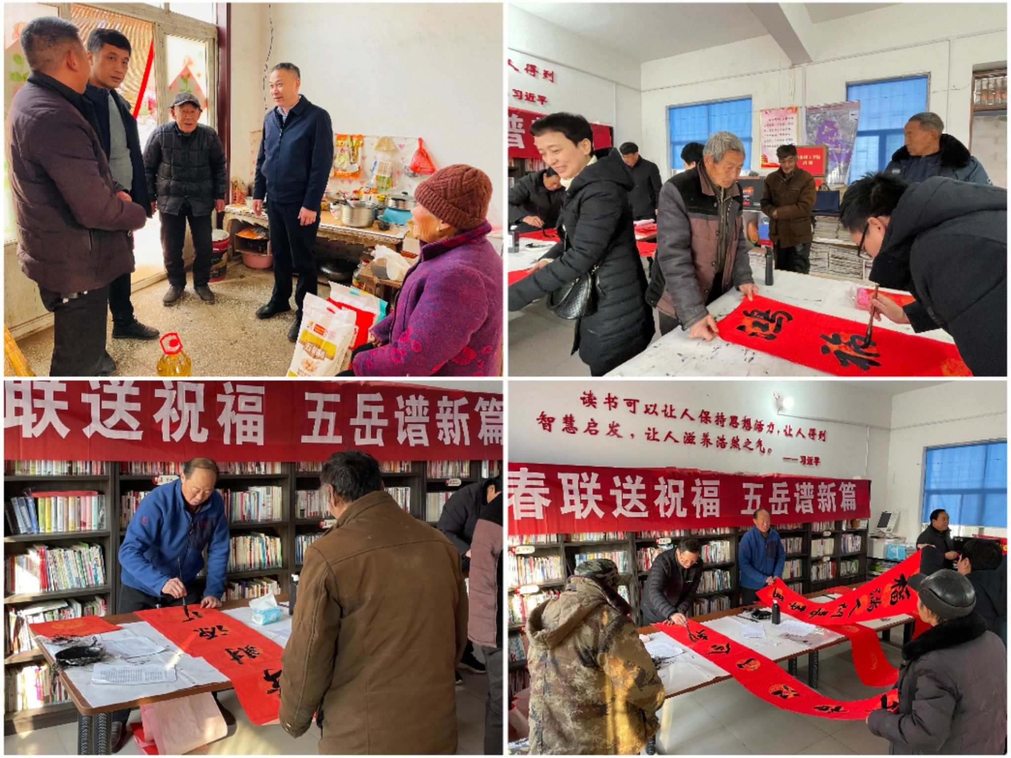 为喜迎甲辰-龙年到来,进一步传承弘扬中华传统文化,展现高校的社会责任和担当,1月29日,在校党委副书记、工会主席曾涛的带领下,校工会、离退休工作处组织10余位书法家,赴定点帮扶村宜阳县五岳沟村开展“春联送祝福 五岳谱新篇”志愿服务活动。
