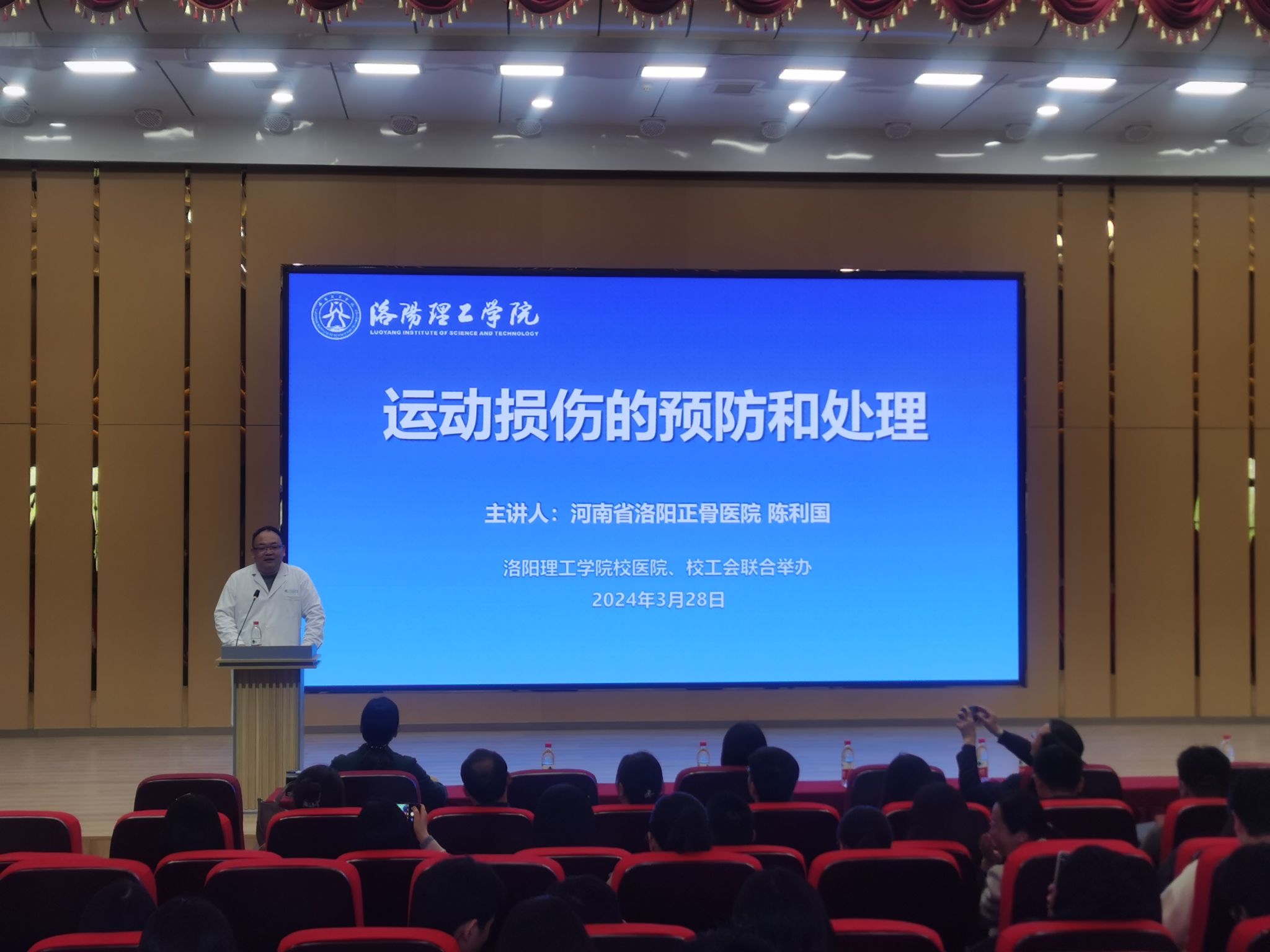 在开元校区图书馆四楼报告厅举行健康讲座。特邀洛阳正骨医院骨关节病二科主任、河南省五一劳动奖章获得者陈利国作《运动损伤的预防和处理》专题讲座,来自各美高梅娱乐场