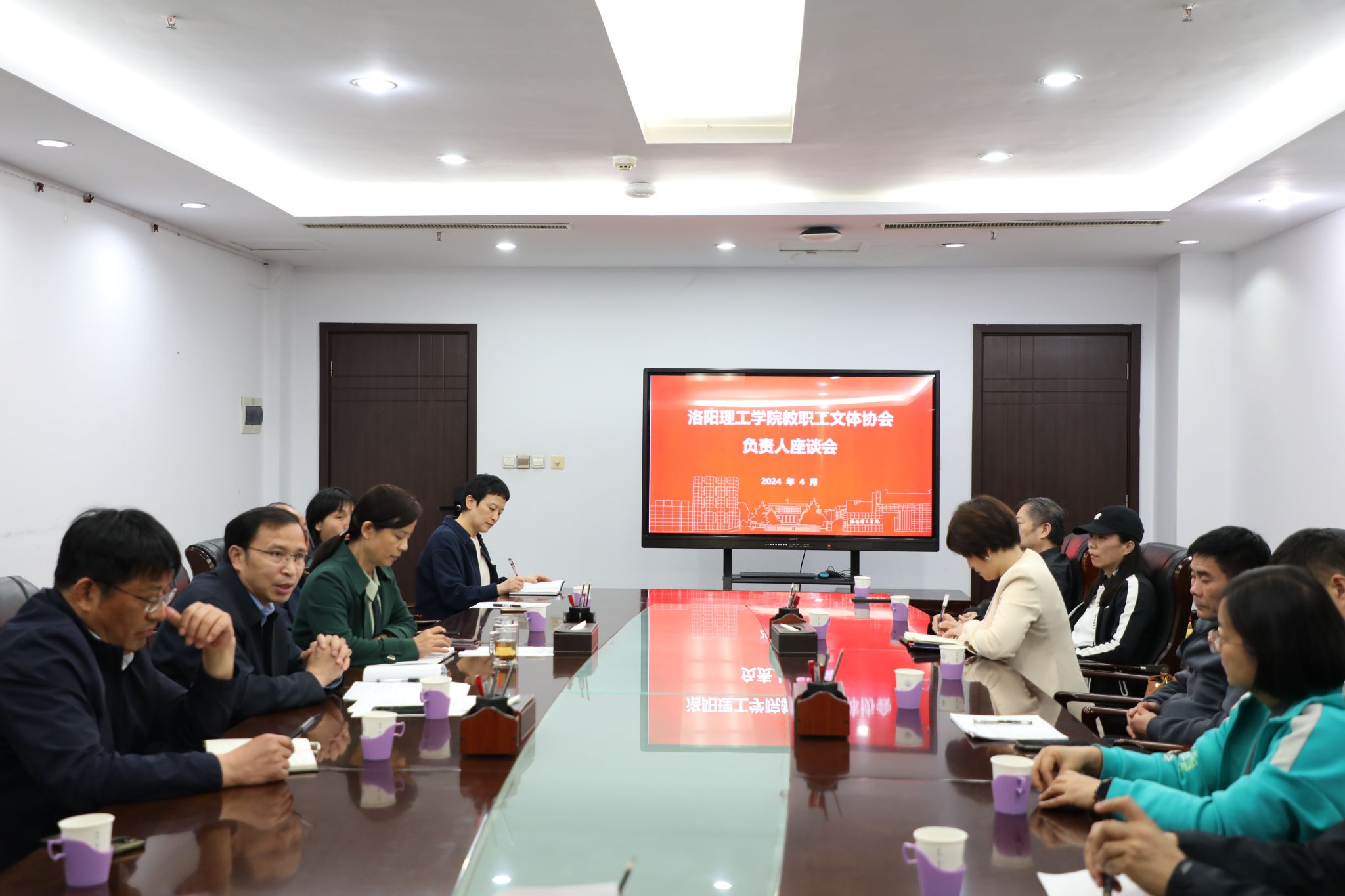 文化体育活动建设,更好推动文体协会高质量发展。4月7日下午,校工会在王城校区办公楼220召开文体协会负责人座谈会,校工会副主席王群芳、杨卫芹,全校16个文体协会负责人及校工会工作人员参加会议。座谈会由工会副主席王群芳主持。