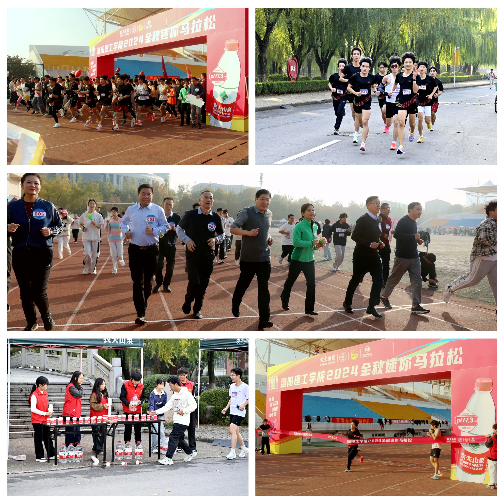 本次校园迷你马拉松比赛全程7.5公里,比赛路线主要设在王城校区校园主干道,沿途设有8个志愿服务点,为参赛师生引导路线,提供补给。保卫处、校医院、校工会等相关部门工作人员一路为参赛师生保驾护航。(图:石伊蕊 邢晓雨 张书瑜 白怡静 韩超旭 林展芃 任伽毅 宋威翰)