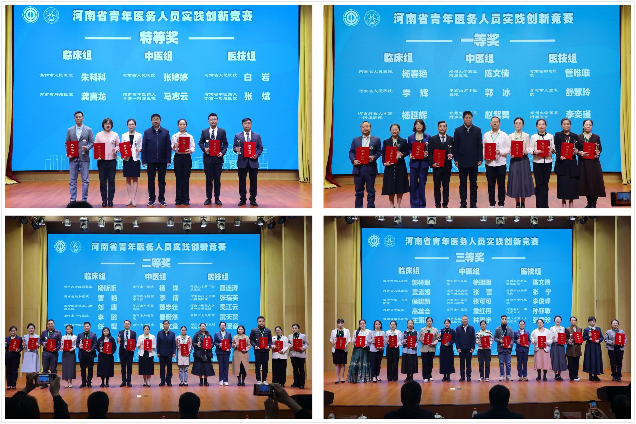 会上,与会领导为临床组、中医组、医技组特等奖及一、二、三等奖获奖选手颁发奖杯和获奖证书。