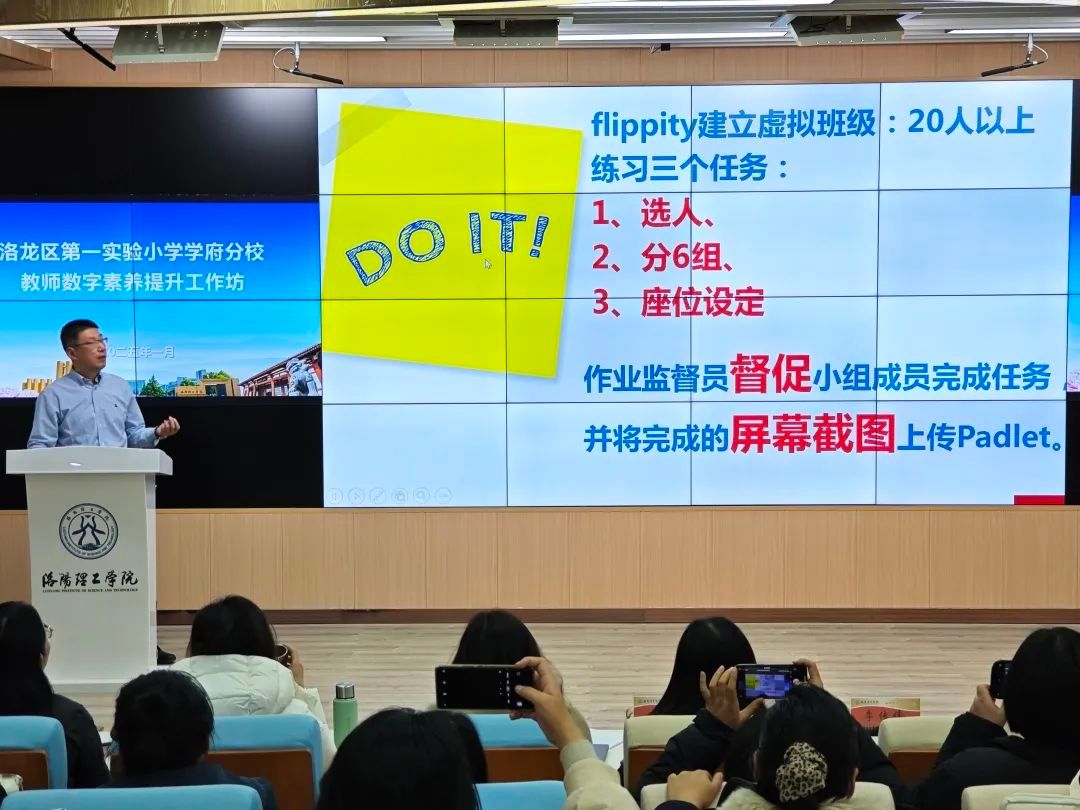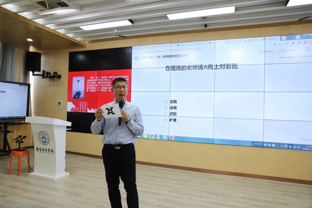 李传锋劳模工作室成员李蒙教授围绕“提升教师数字素养,聚焦课堂互动,教学、家校互动”这一目标,在王城校区公共教学楼教师发展中心开展了助力洛龙区第一实验小学教师数字素养提升工作坊活动,活动由工会副主席杨卫芹主持,洛龙区第一实验小学学府街分校100余名教师参加活动。