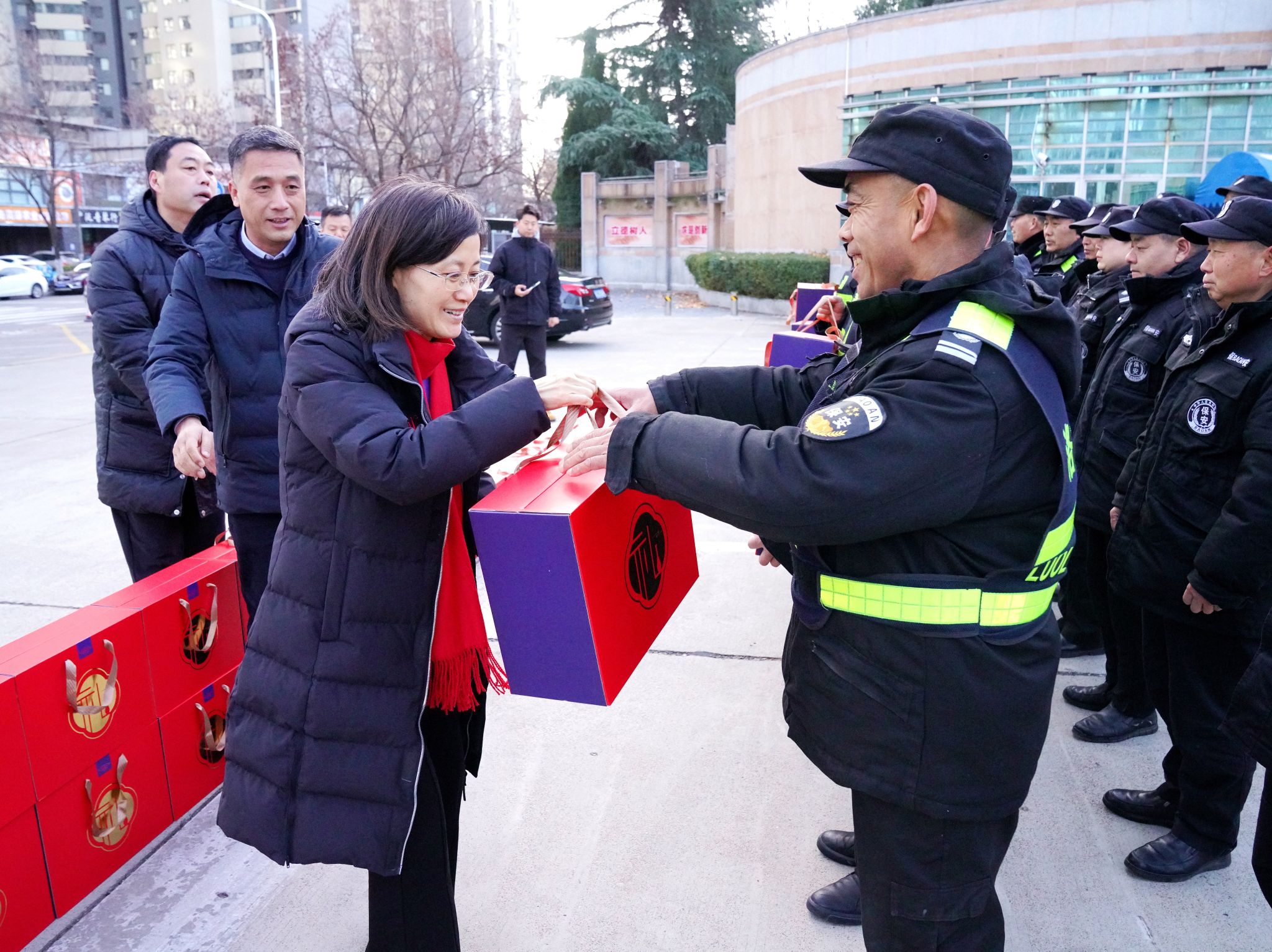 校长丁梧秀为春节期间坚守一线岗位教职工送上慰问品
