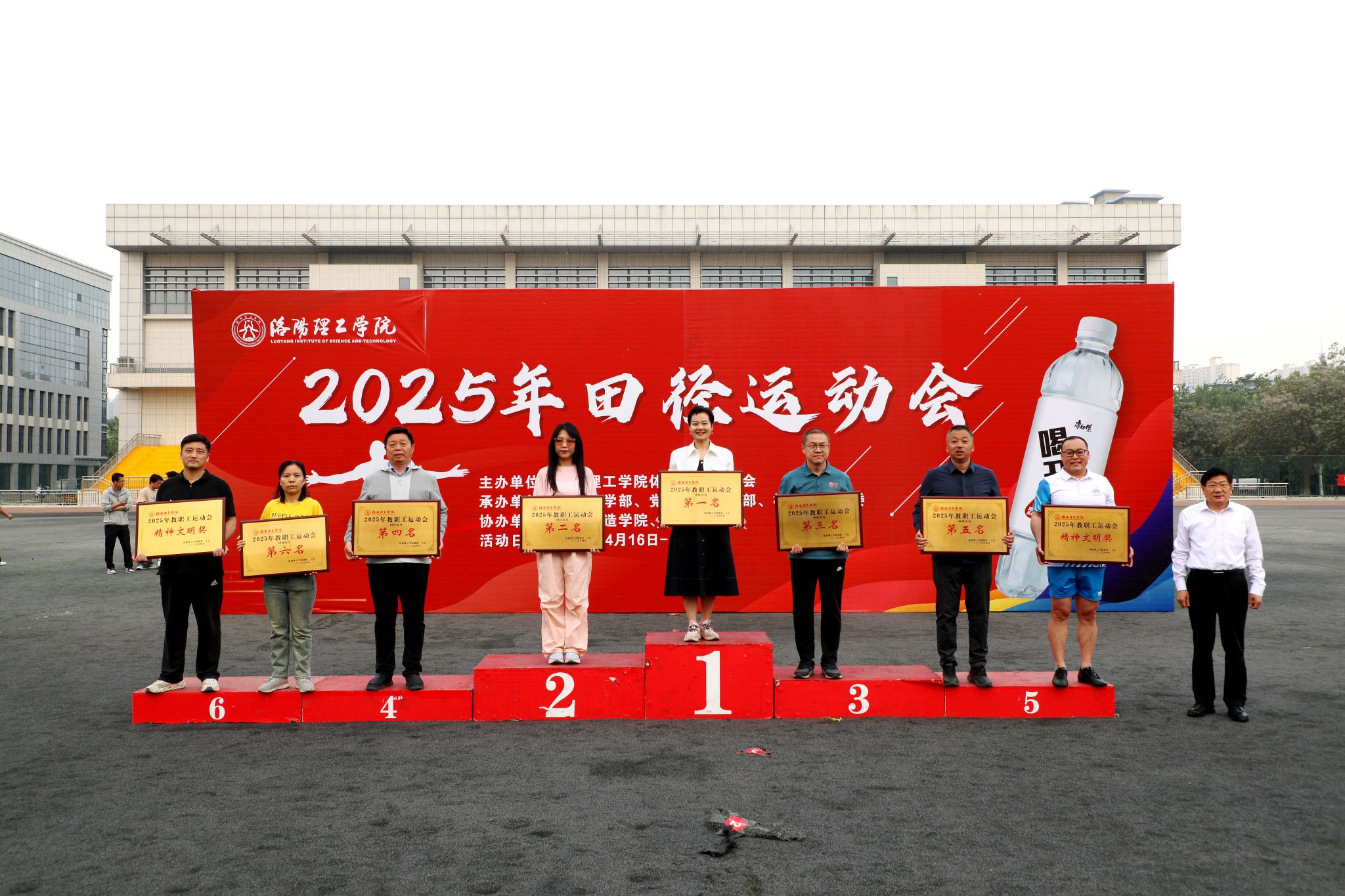 举行2025年教职工田径运动会。4月18日下午举行闭幕式,校领导卢志文、丁梧秀、曾涛、胡恩立出席,各二级单位负责人、师生代表参加。闭幕式由党委副书记、工会主席曾涛主持。