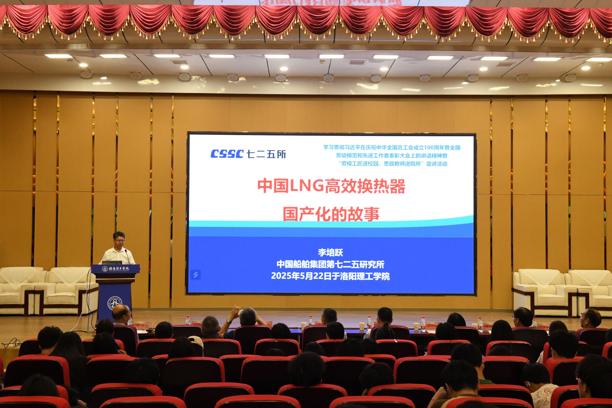开元校区图书馆报告厅举行。洛阳市总工会党组成员、副主席贾锁文,校党委副书记、工会主席曾涛出席活动,相关部门负责人、劳模工匠及师生代表到场聆听。