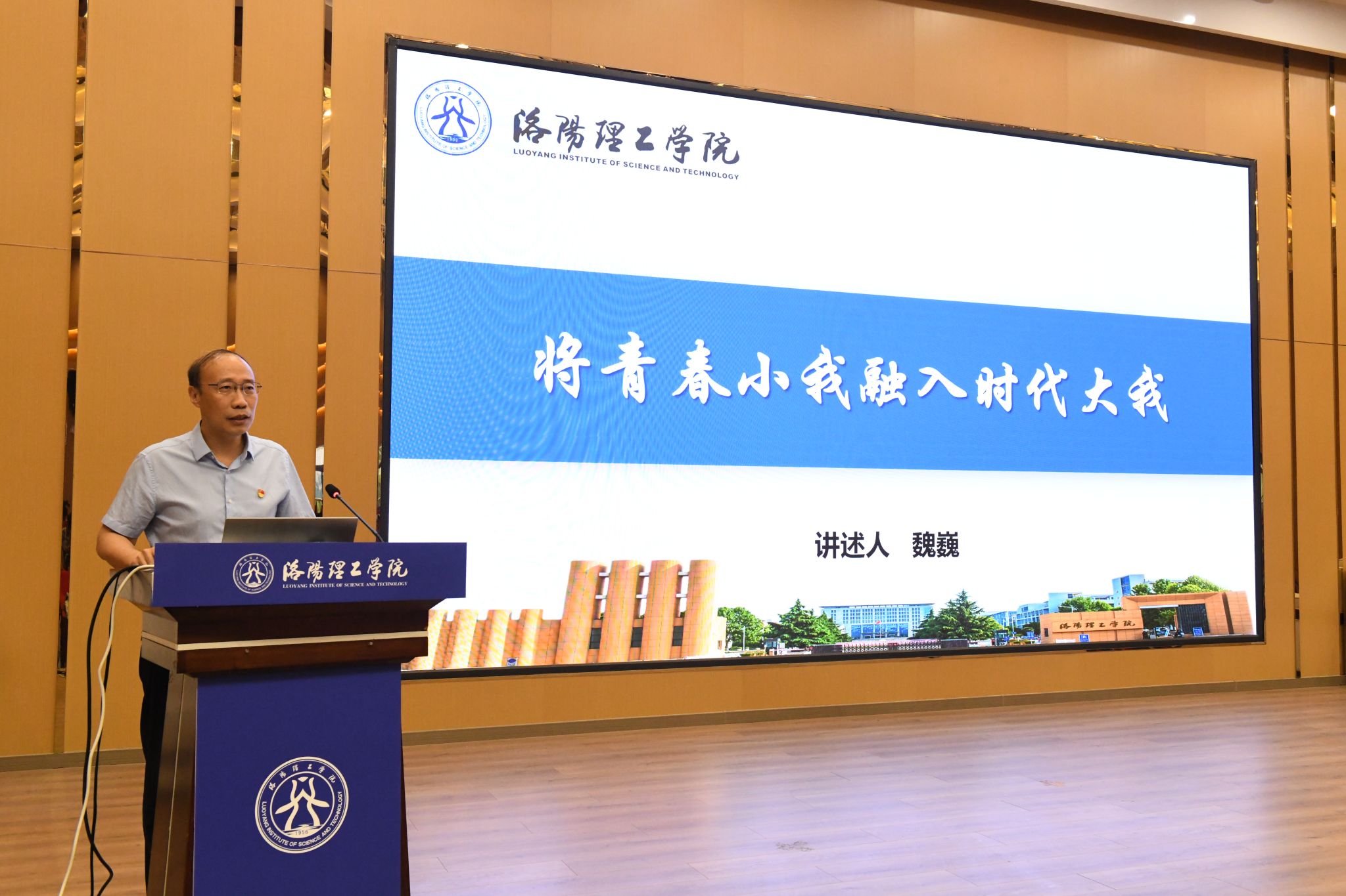 全国劳动模范郭建波、全国优秀教师魏巍、洛阳市劳动模范李培跃、河南省先进工作者武铁传依次进行宣讲。他们分别以《像铁人一样工作》《中国LNG高效换热器国产化的故事》《将青春小我融入时代大我》《深耕一线心如磐 匠心如炬照征途》为题,讲述他们爱岗敬业、甘于奉献、攻坚克难的感人故事,生动诠释了劳模精神和工匠精神,为师生们带来一堂别开生面的思政课。
