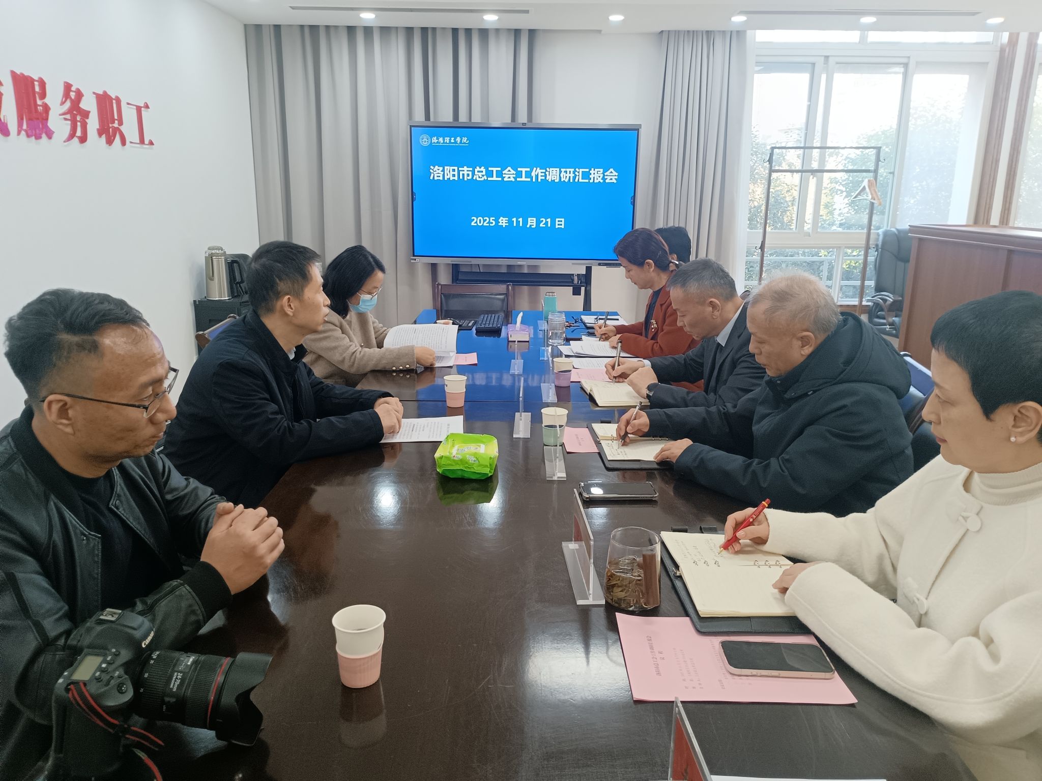 工会的基本情况和特色工作,包括承办河南省教学技能竞赛、“职工小小家”建设、青年教师暑期实践营等品牌项目。相关负责人就具体工作进行了汇报。