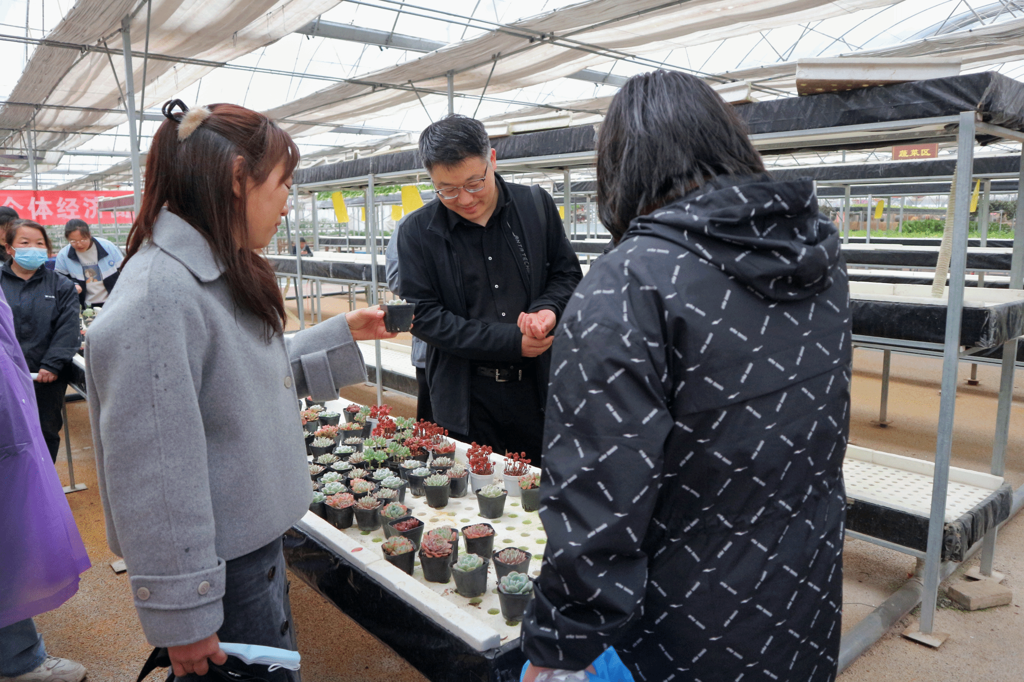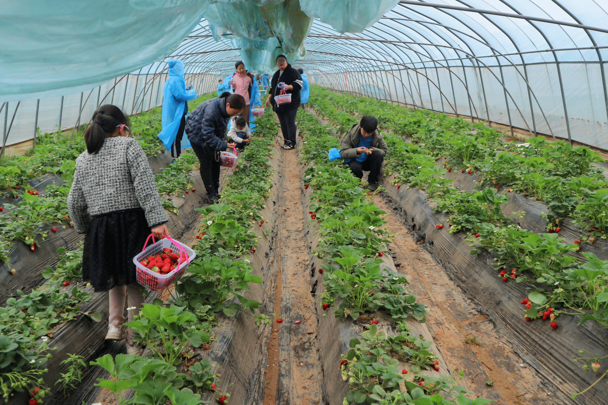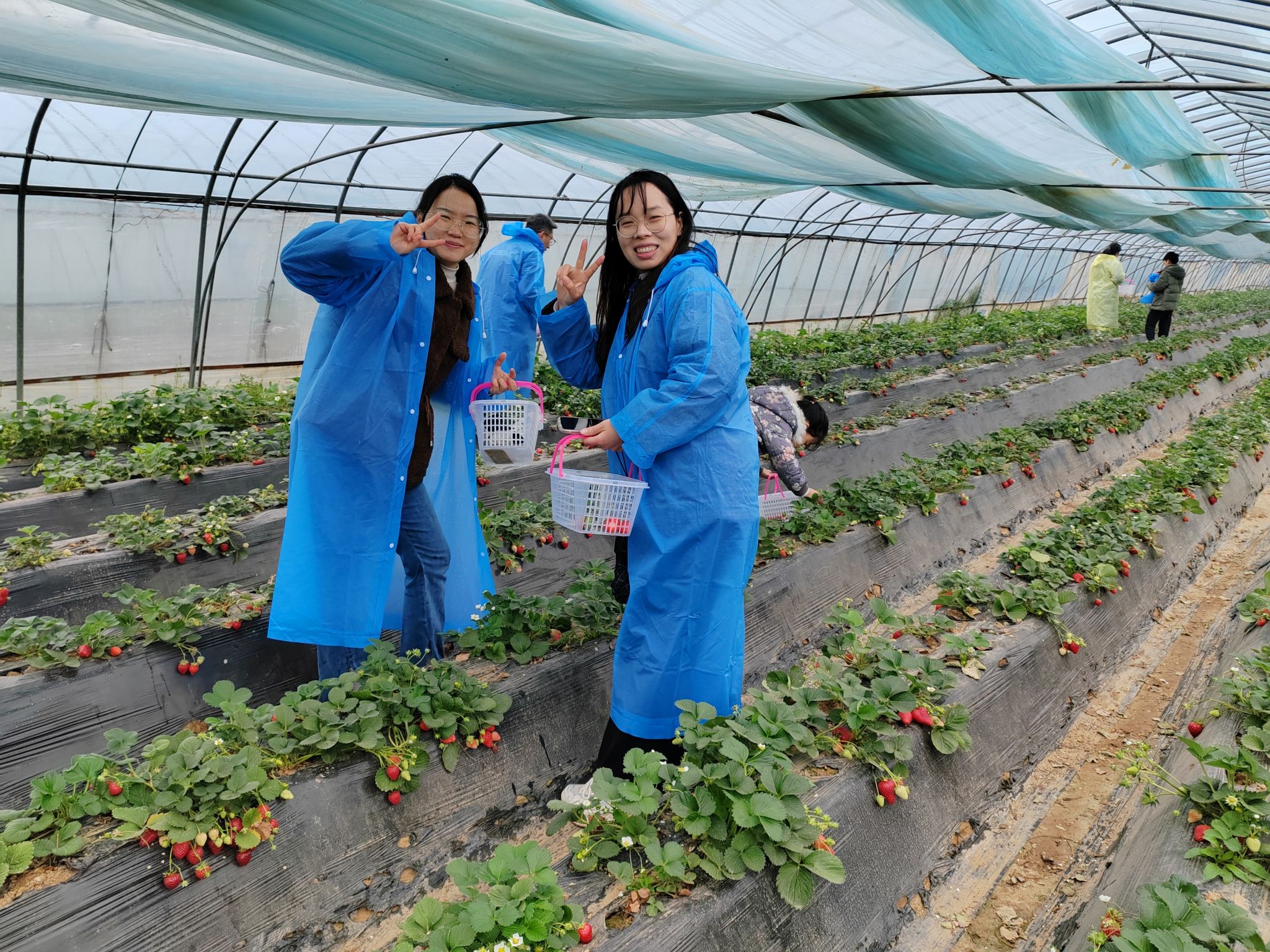 全体人员走进温室大棚,体验采摘乐趣。