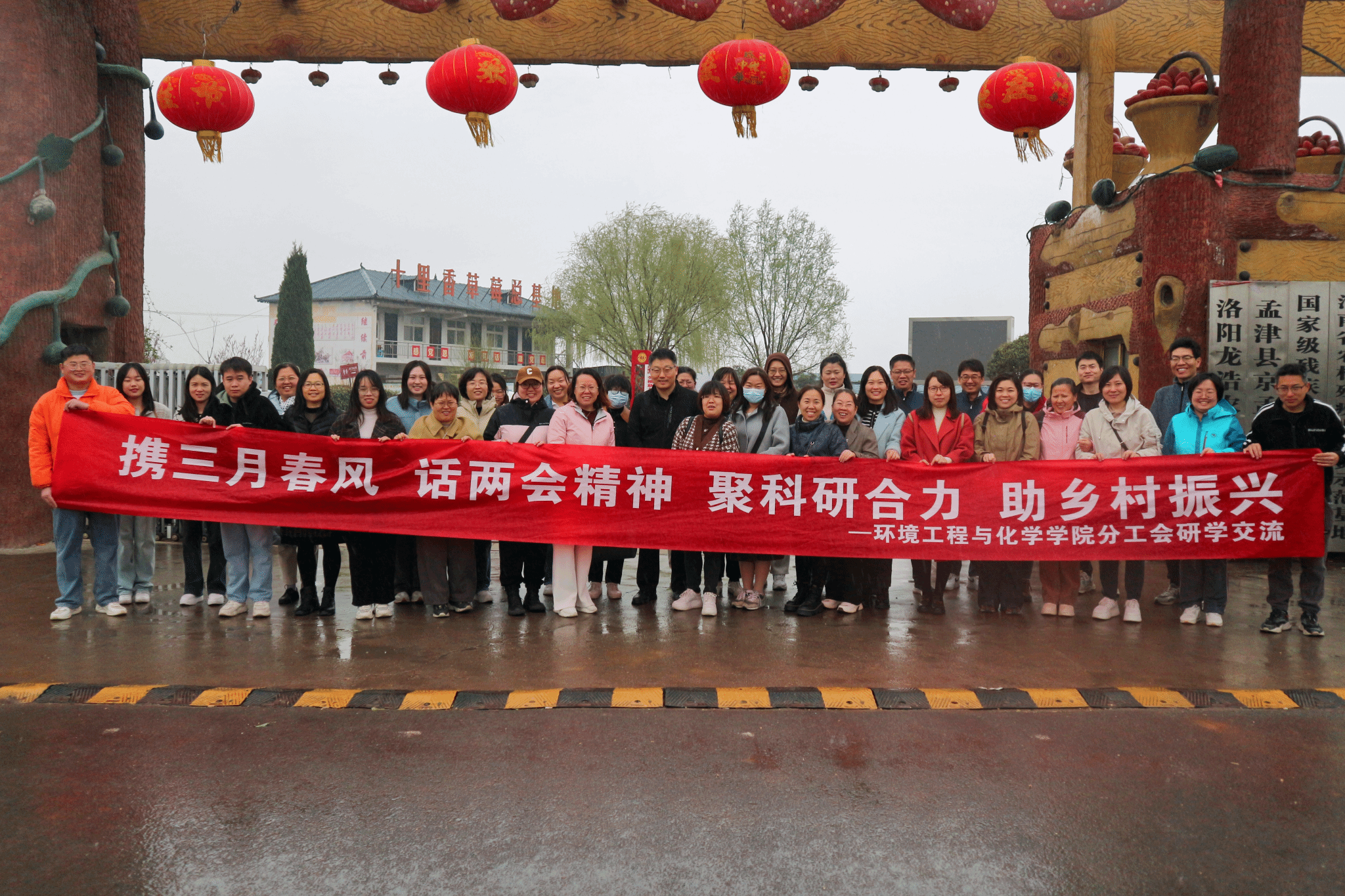 分工会60余人乘车在孟津送庄镇十里香草莓种植基地开展研学交流活动。