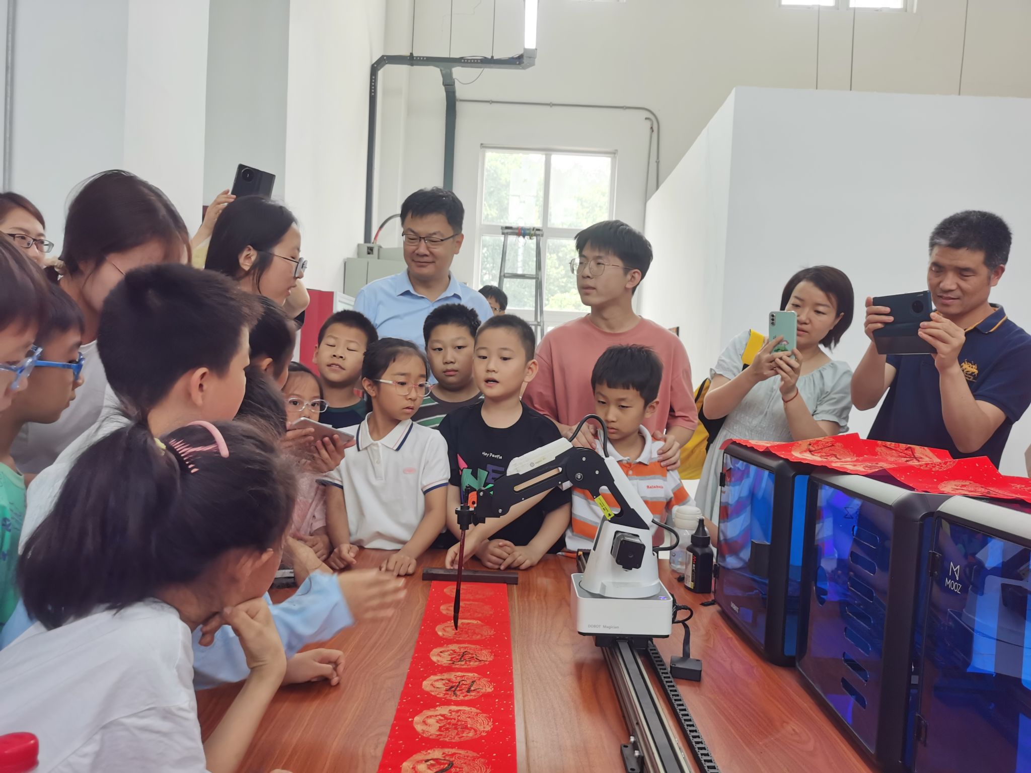 人工智能和机器人科普基地,举办了“科技点亮童年 数智启迪未来”科普实践活动,教职工及子女50余人参加。活动中,讲解老师带领孩子们观看了讯飞移动机器人小车、声音信标无线充电智能车、3D打印、无人机、机械狗以及机械臂的多种功能等人工智能技术展示,运用简洁明了的语言和丰富的案例图片,向孩子们介绍了人工智能在学习和生活中的实际应用,以及智能制造的基本原理和广泛应用领域。通过老师的讲解,孩子们对智能制造的发展前景有了更为清晰的认识,激发了他们对人工智能的兴趣。