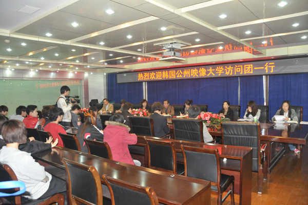 4月6日,韩国公州映像大学副校长柳在万一行20余名师生到美高梅娱乐场 进行友好访问。美高梅娱乐场 与韩国公州映像大学举行了合作办学座谈会,韩国公州映像大学副校长柳在万和美高梅娱乐场 副院长邱天河以及美高梅娱乐场合作 合作处、团委、艺术系等部门负责人参加了会议。 邱天河副院长致欢迎辞,介绍了洛阳市和美高梅娱乐场 的基本情况。双方共同商讨了关于开展合作办学的意向,在专业设立上达成了共识,并且在如何互认学分,突破学生语言关上进行了具体的探讨。