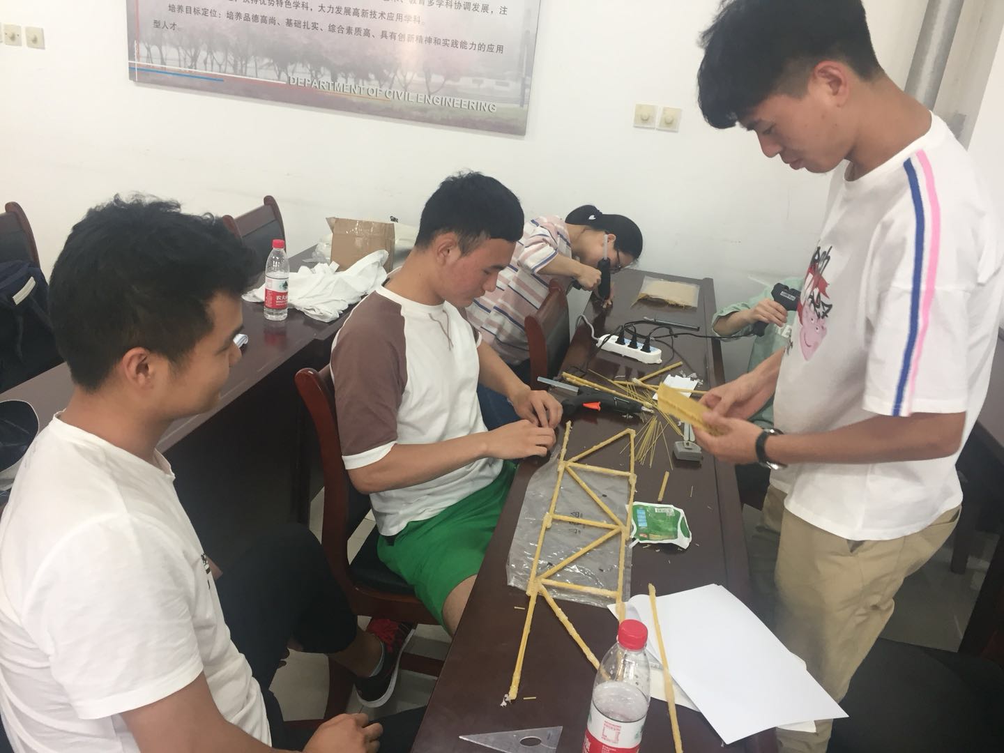 中外合作办学的同学举行了一场别开生面的“意面桥建造”比赛。