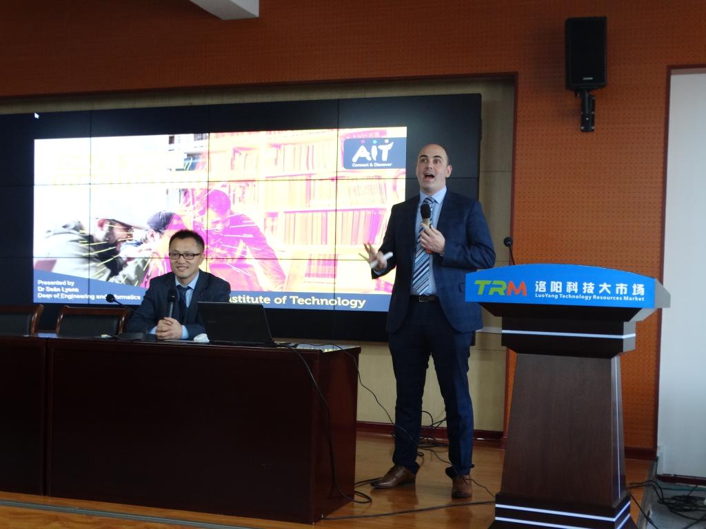 第二天举行了合作办学项目座谈会, Sean Lyons一行与副校长王晓峰、土木美高梅娱乐场