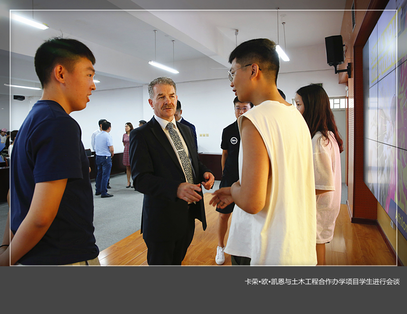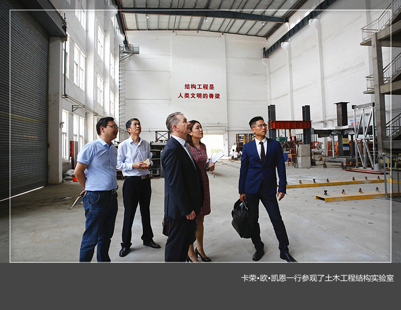 会谈之后,卡荣·欧·凯恩一行参观了土木工程结构实验室,与土木工程合作办学项目学生进行了会谈,并合影留念。