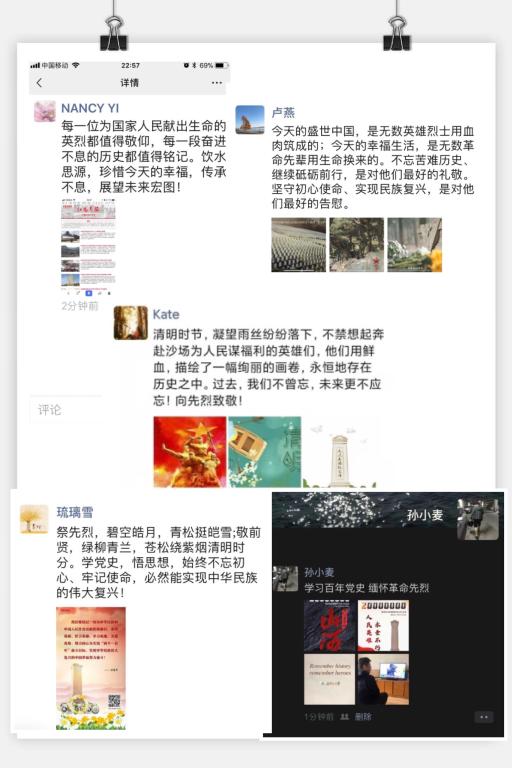 为贯彻落实党的十九届四中、五中全会精神,缅怀革命先烈,结合美高梅娱乐场 《党史教育学习方案》,机关党委第十五支部在清明节期间组织“祭英烈 学党史 悟思想”党日活动。在清明节期间,支部党员及部门人员在网上进行祭奠活动,学习相关的历史与红色文化,并郑重地写下自己的学习感想。