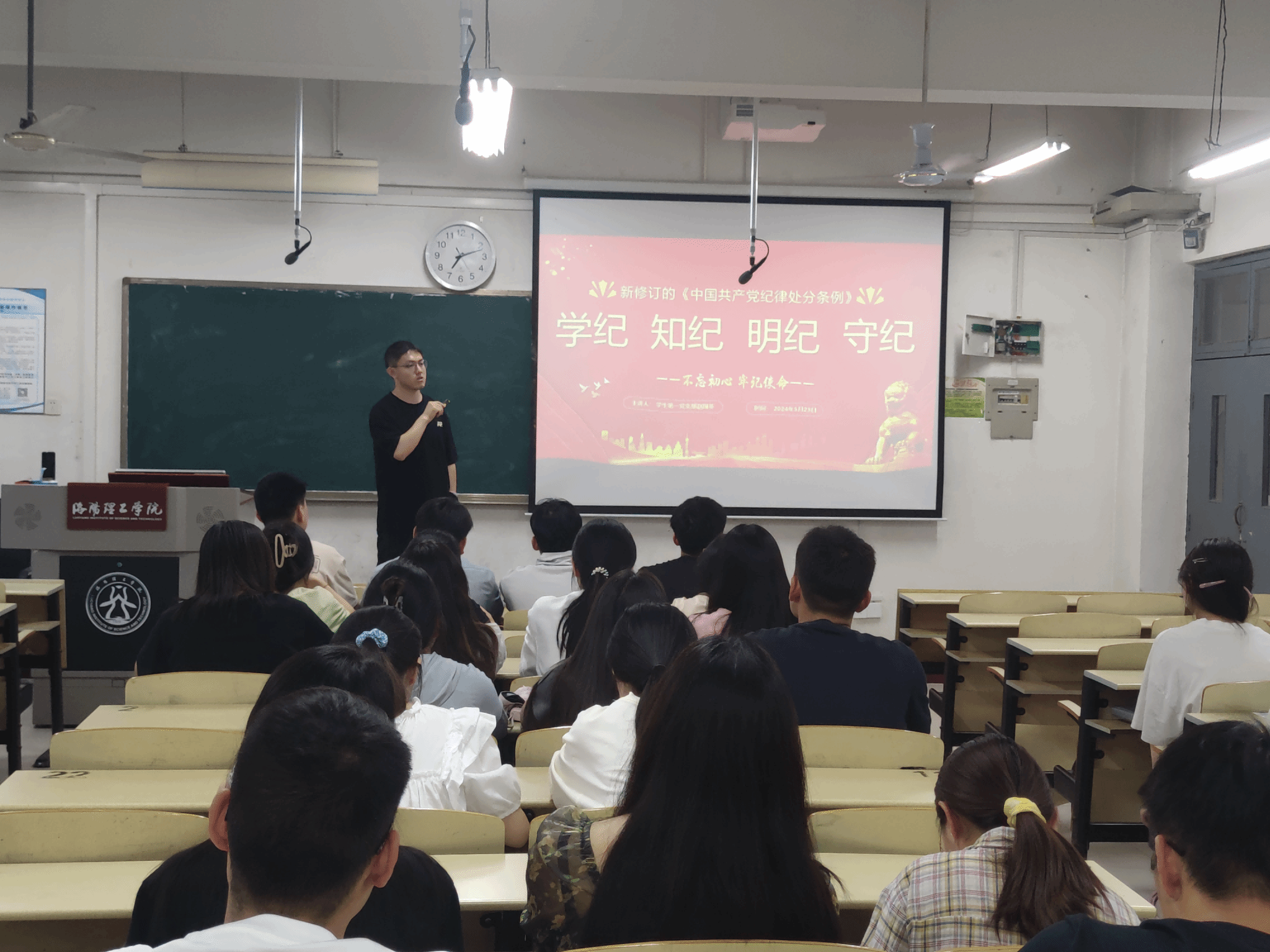 为加强学生党员的党性修养,强化学生党员的纪律意识,5月27日,学生第一党支部组织全体党员开展“学党纪 强党性 促发展”党纪学习教育暨主题党日活动。