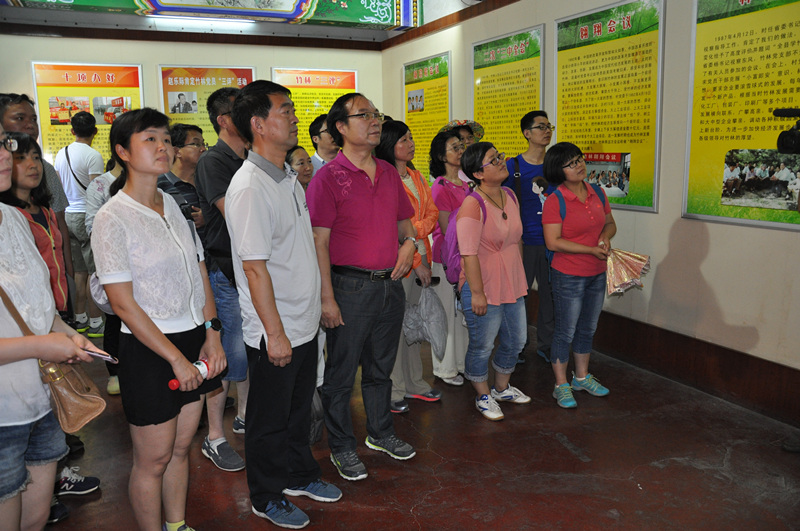 大家首先听取了当地政府负责人关于竹林镇整体情况的介绍,了解竹林镇三十年来艰苦的奋斗历程,感受到竹林镇由村变镇,由穷变富,由落后变先进的三十年风雨巨变。然后,观看了一段精简的竹林镇宣传片,更是将《竹林新风公约》、“十项八好”评选活动、重阳节儿孙孝拜仪式等充满竹林镇特色的活动展现的淋漓尽致,其丰富独特的活动形式、饱含中国传统美德的活动内容引得在场师生连声称赞。随后,大家又相继参观了竹林镇引黄入竹饮水工程、竹林镇博物馆和竹林镇碑苑,一览竹林镇丰郁浓厚的历史内涵与艰苦奋斗的文化成果。最后,全体党员面对党旗又一次庄严宣誓,重温了入党誓词。