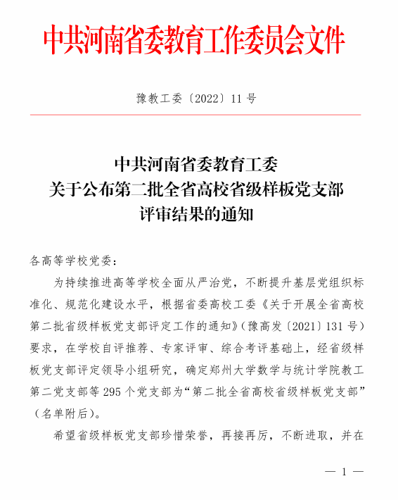 近日,中共河南省委教育工委发布《关于公布第二批全省高校省级样板党支部评审结果的通知》(豫教工委〔2022〕11号),美高梅娱乐场