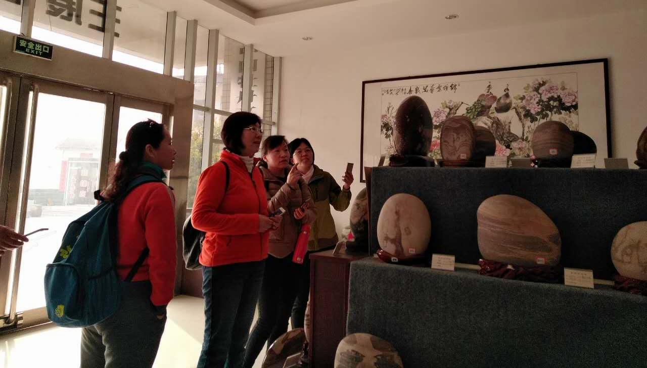 大家首先参观了“中国平乐牡丹画创意园区”。 孟津县平乐镇平乐村是目前全国唯一的牡丹画生产基地,被誉为“农民牡丹画创作第一村”。在园区,大家欣赏了大量的牡丹画佳作,并在创作室内观看农民画家现场作画,部分老师还进行了临摹学习;在黄河石展厅,极富神韵的奇石让人叹为观止。