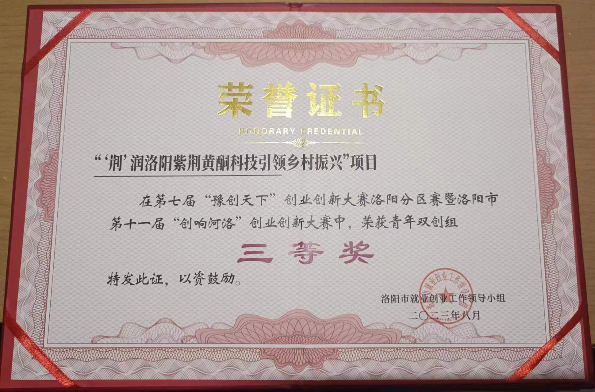 生物技术专业参赛项目《“荆”润洛阳紫荆黄酮科技引领乡村振兴》获得了青年双创组三等奖的优异成绩。