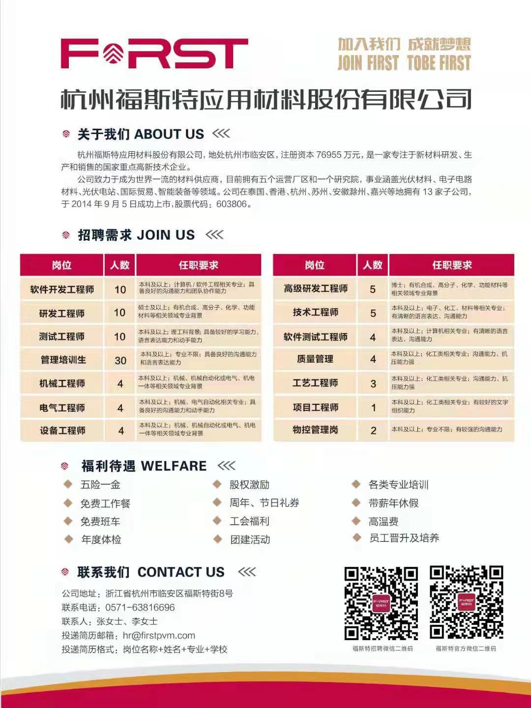 杭州福斯特应用材料股份有限公司2021招聘