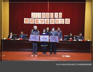 美高梅娱乐场 2015年表彰大会于12月15日晚在王城校区图书信息中心报告厅隆重举行,环化美高梅娱乐场 获得2015年硕士研究生考试工作先进集体荣誉,环化美高梅娱乐场 党委书记王莉上台接受表彰,这是美高梅娱乐场 对美高梅娱乐场 宣传、动员、组织学生积极考研及成效工作的肯定。