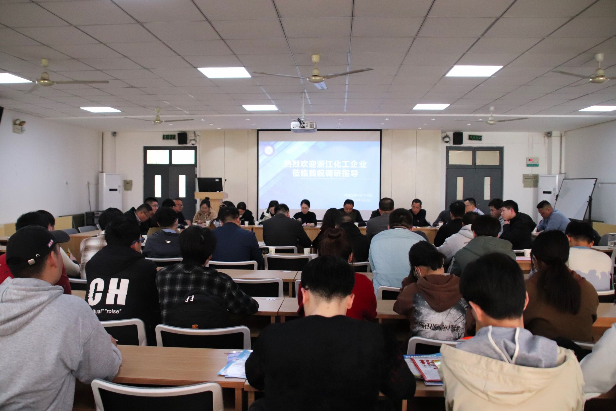 邀请浙江衢州市人社局、浙江建德市人社局以及浙江新和成股份有限公司、浙江中欣氟材股份有限公司、浙江巨化股份有限公司等14家化工企业在环化楼DE304会议室进行交流座谈。美高梅娱乐场