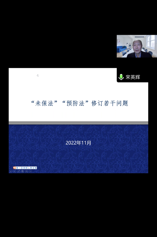 宋英辉教授从“两法”修订概况、修订遵循基本思路方面着手,重点解读了法律修订的基本思路,通过逐步解读修订内容,带领大家更加系统深入地了解和学习了“未保法”和“预防法”修订的重点与亮点。