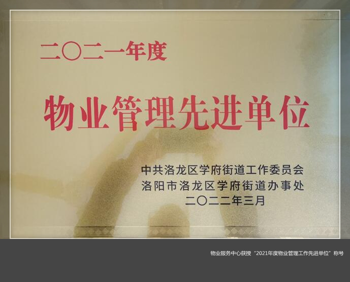 3月6日,学府街道办事处召开2022年经济工作会议。会上,对2021年度先进个人、先进单位进行了表彰。后勤管理处物业服务中心被授予“2021年度物业管理工作先进单位”称号,并颁发了奖牌。